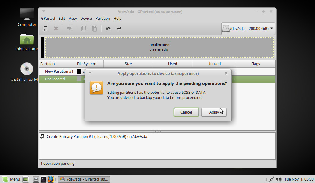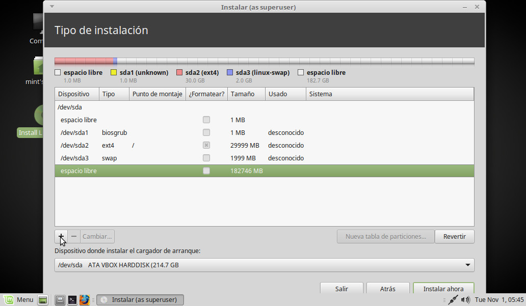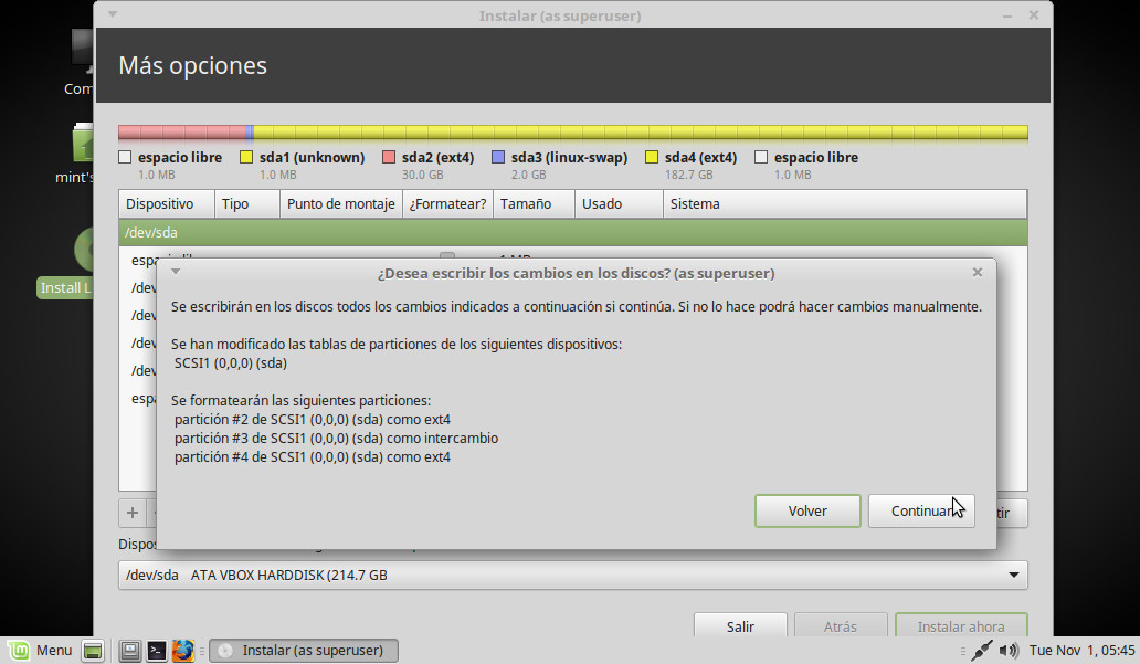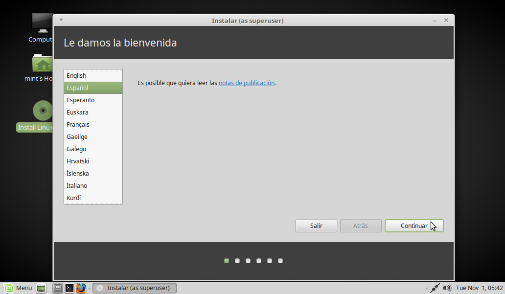 De vuelta en el escritorio, pinchamos dos veces sobre el icono Install Linux Mint:
