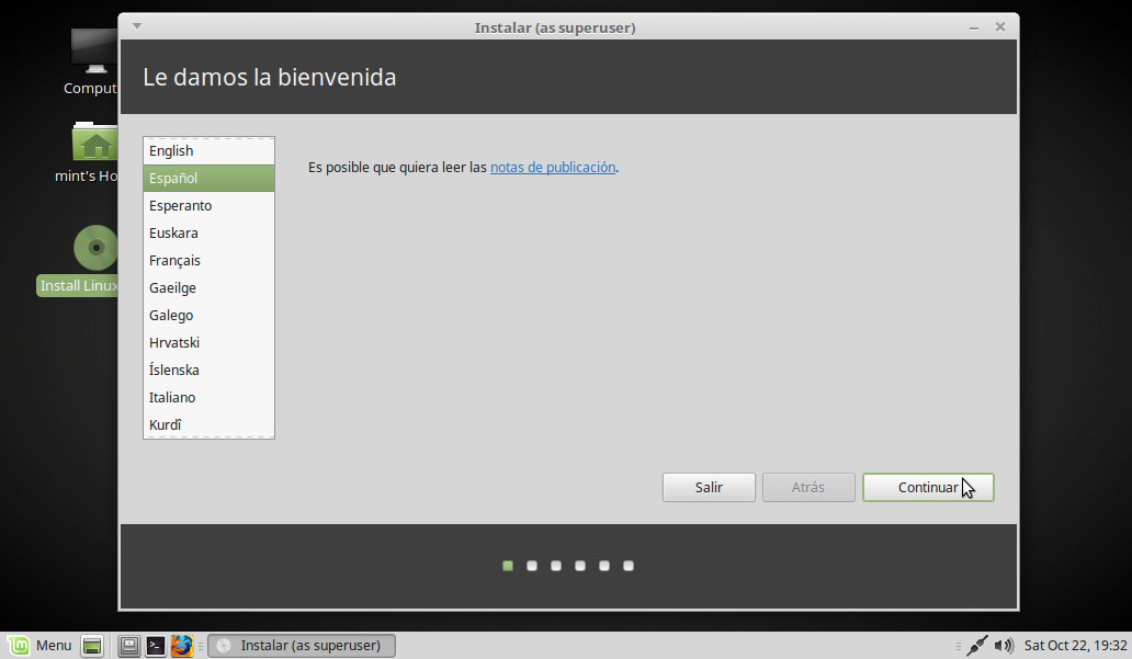Empezamos la instalación. Doble clic sobre el icono Install Linux Mint: