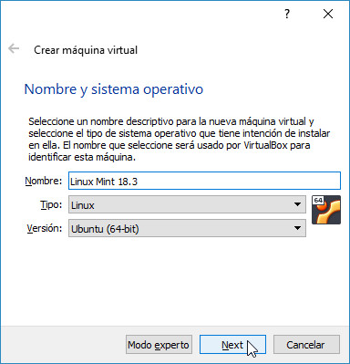 Después de descargar, instalar y configurar el programa VirtualBox, vamos a crear nuestra máquina virtual (en este ejemplo, de Linux Mint 18.3 Mate). Es como crear un ordenador en el que debemos ir definiendo sus características: