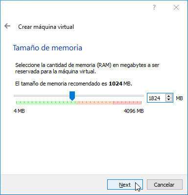Seleccionamos parte de la memoria RAM disponible en nuestro equipo. Next: