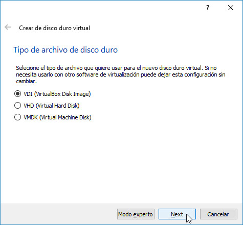 Mantenemos la primera opción, tal y como se nos sugiere. Next:
