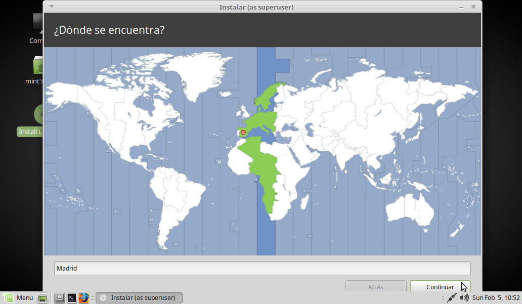 Mientras la instalación avanza, confirmamos nuestra Ubicación: