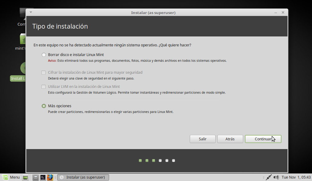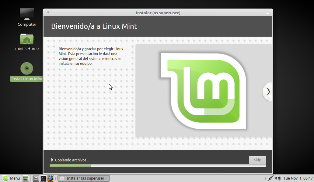 De vuelta en el escritorio, pinchamos dos veces sobre el icono Install Linux Mint: