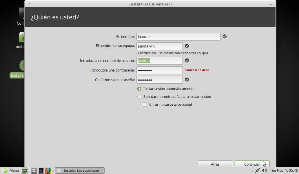 Marcamos Iniciar sesión automáticamente y continuamos: