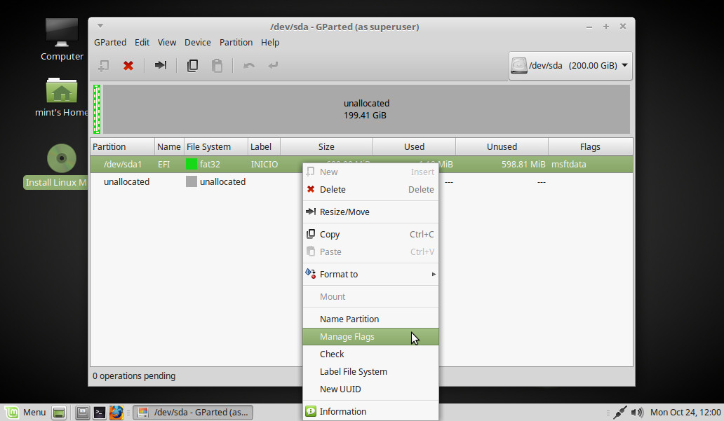 Sobre la partición creada hacemos botón derecho > Manage Flags: