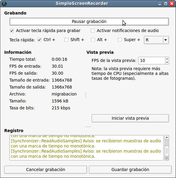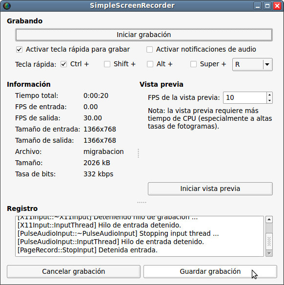 SIMPLE SCREEN RECORDER es un sencillo programa que nos sirver para grabar lo que estemos haciendo en el ordenador. Podemos grabar solo la imagen o también el sonido si queremos añadir comentarios. Debemos instalarlo desde un Repositorio externo. Pasos: