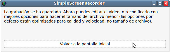 9.- Grabación guardada. Podemos cerrar el programa o volver a la pantalla inicial para repetir el proceso: