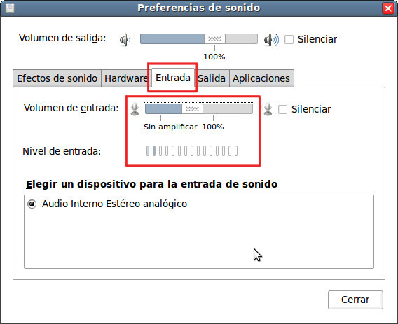 Si el problema es el audio del archivo, debemos revisar las opciones del sonido de nuestro sistema en la ruta Menú > Preferencias > Sonido > Entrada comprobando que el volumen de entrada no esté silenciado y que esté en un nivel adecuado para grabar el sonido.