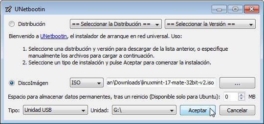 TutorialesGrabar una imagen .ISO en Windows (I): MBRUna vez que hemos descargado la imagen .ISO de Linux Mint (u otra distribución GNU/Linux) como se explica aquí, procedemos a grabarla. Si tenemos en nuestro disco duro una partición denominada EFI debemos utilizar para ello el programa Rufus, como se explica aquí. Si NO tenemos esa partición en nuestro disco podemos utilizar cualquier programa (Rufus incluido) de grabación de imágenes .ISO como se explica en este tema. Tenemos dos opciones: GRABAR LA IMAGEN .ISO EN UN DVD: 1.- Abrimos nuestro programa habitual de grabación Ya tenemos el DVD de Linux Mint preparado para arrancar el ordenador desde él. GRABAR LA IMAGEN .ISO EN UN PENDRIVE: Necesitaremos un programa que nos permita grabar la imagen .ISO en un pendrive. Podemos usar el programa gratuito Unetbootin descargado desde aquí. Una vez descargado, lo abrimos (no necesita instalación). Funcionamiento: 1.- En la primera ventana del programa marcamos "Disco imagen". |